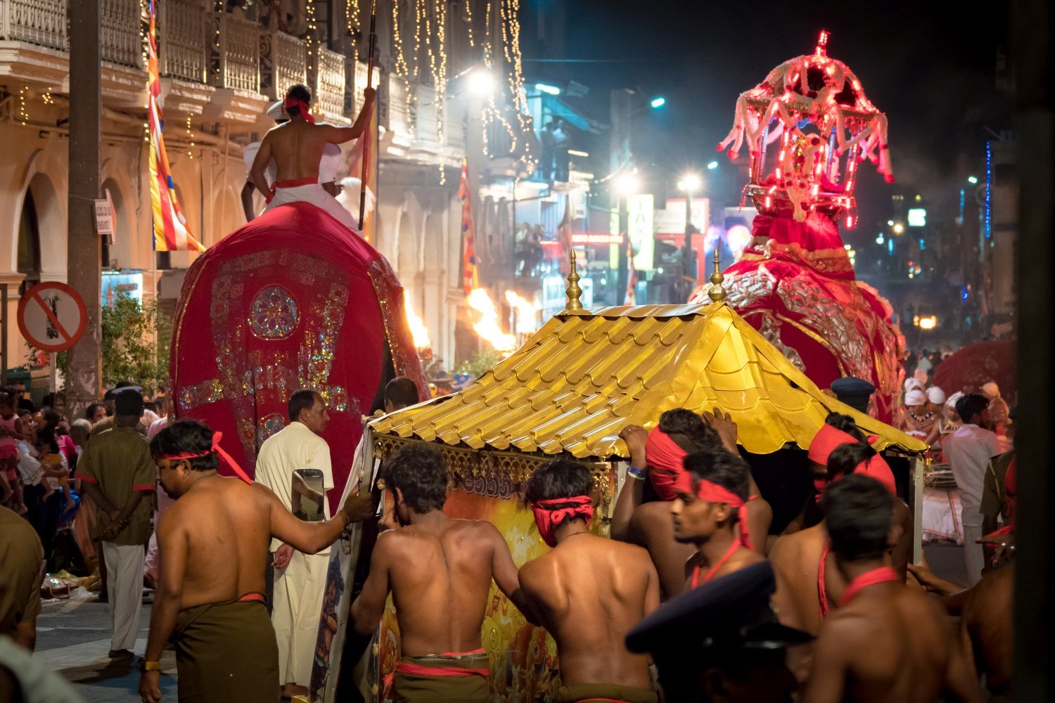 On the fifth evening, the peraheras move outside devales. This time god insignia are carried on the back of an elephant on a dome like structure called “Ranhilige”.
