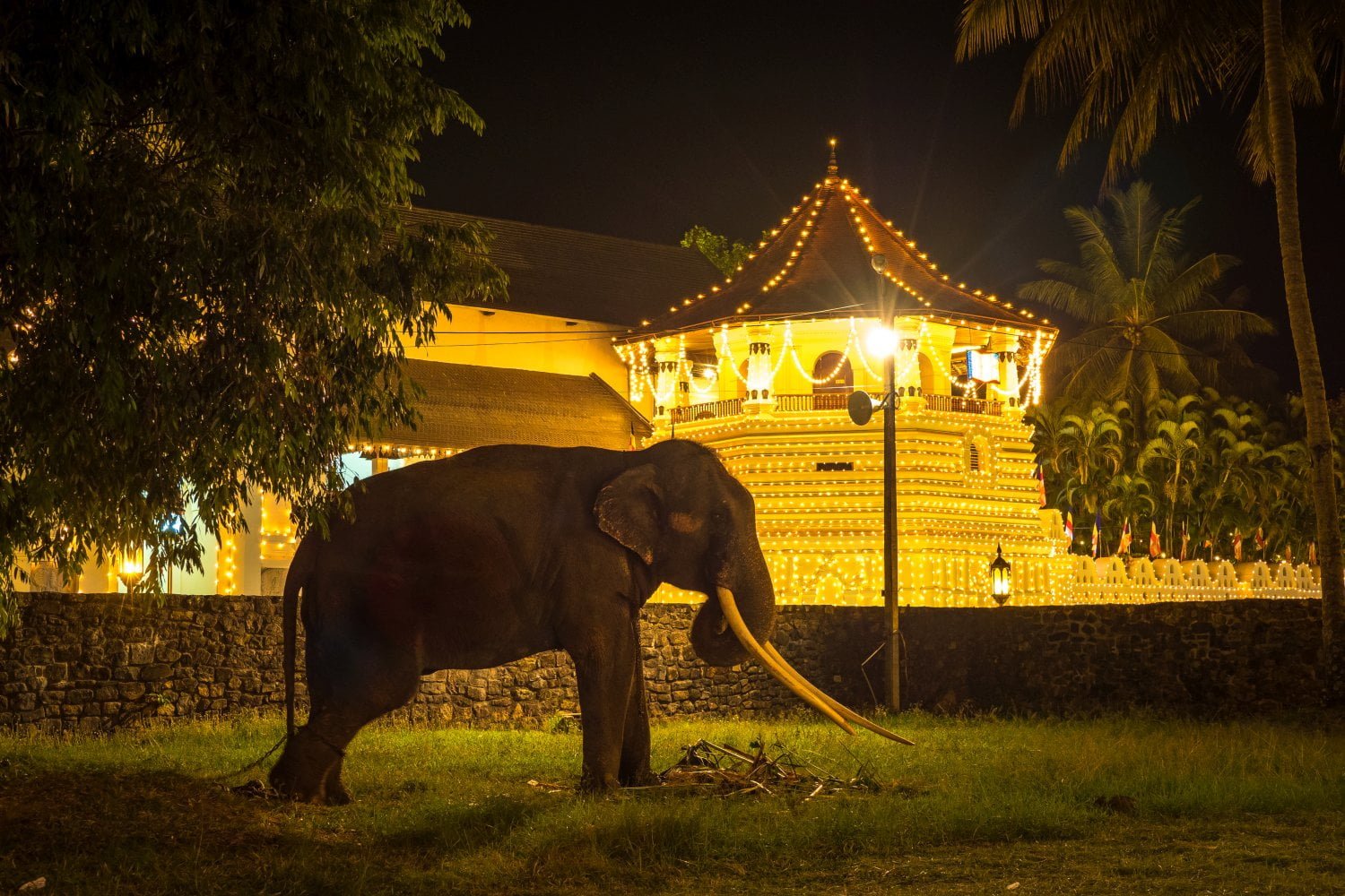In the past the Sacret Tooth relic was joining the Kandy Esala Perahera installed on a special elephant called Maligawa. Today, for security reasons, the relic is left inside the temple. What can be seen on the Maligawa elephant is only a copy of the Sacret Tooth casket.